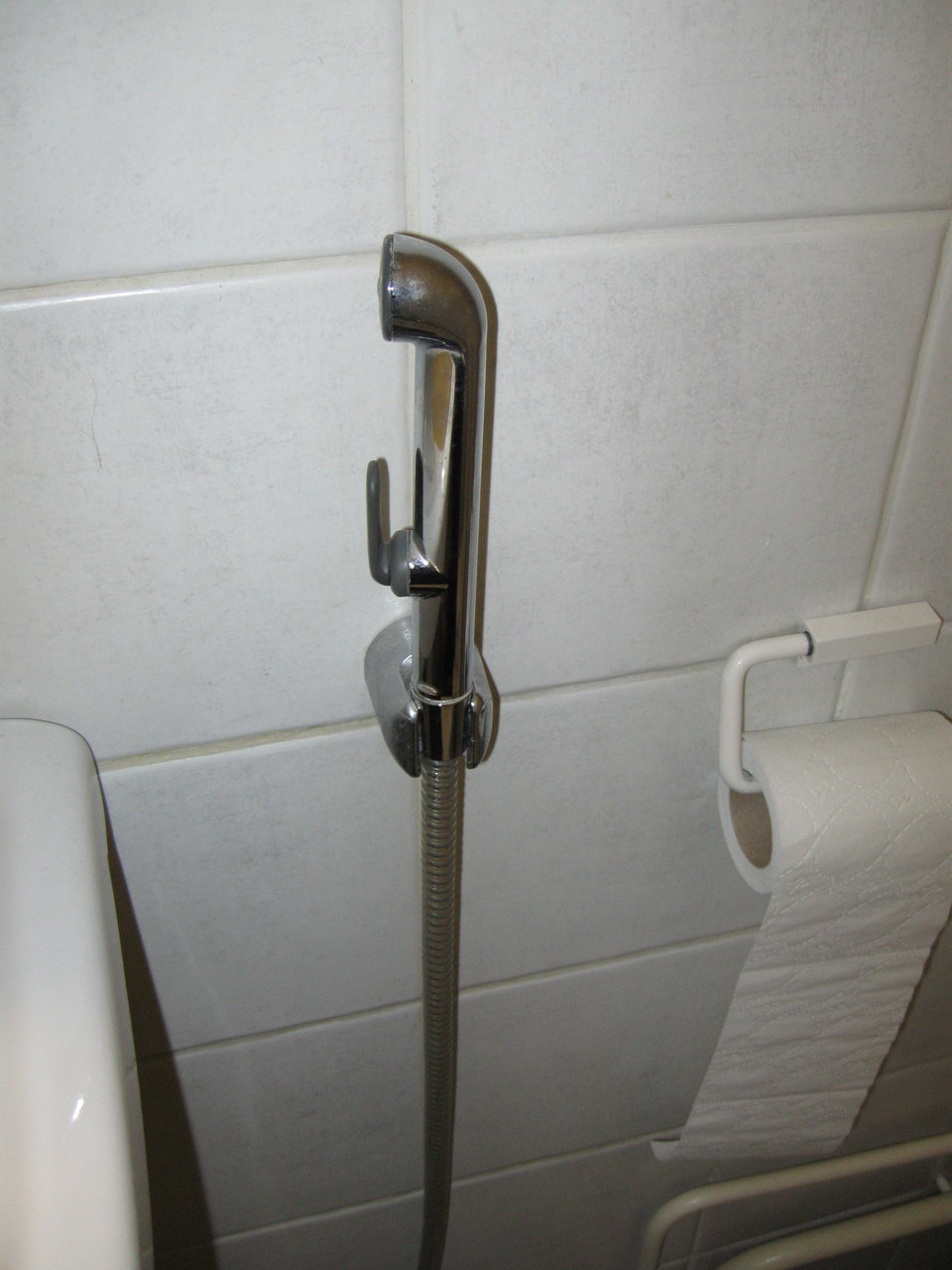 A bidet shower was installed next to each toilet when our house was built. For me, that sprayer is much easier to use than a "tabo", the Tagalog word for a container used to hold the water for washing. I've heard Filipinos call it simply a bidet, but it's not the same thing.